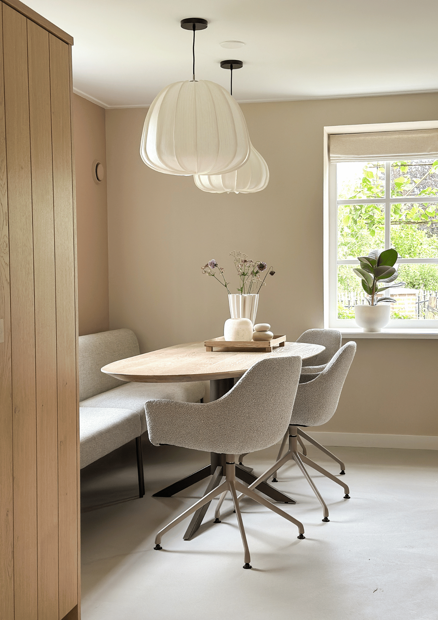 We hebben gekozen voor een Scandinavische basis met zachte, natuurlijke tinten, gecombineerd met warme houtsoorten, strakke lijnen en subtiele luxe accenten. Van vloer tot plafond, van meubel tot accessoires alles is tot in detail op elkaar afgestemd.